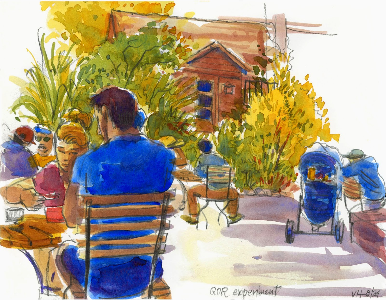 Descanso Gardens in La Canada, California was once again a wonderful place for a workshop series, and fortunately had lots of shady places for sketching on warm summer days. In preparing to teach workshops, I really enjoy the process of planning--going back to the basics of thumbnail sketching, thinking in line, and thinking in shape. It's a great opportunity to experiment with color...adding just a bit for emphasis, or starting with color, then adding line...or no line at all!