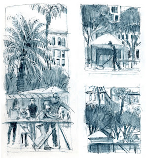 In January, we visited downtown Los Angeles--some favorite locations of mine, and some new surprises...like the annual temporary ice rink in Pershing Square! And this is one of the great things about a Sketchcrawl...discovering (or rediscovering) something in your own home town...![]() |